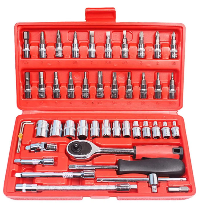 Este kit de fábrica incluye todo lo que necesitas for realizar diferentes tareas, desde apretar tornillos hasta desmontar piezas. Con un largo de 24 cm, el modelo Kit De Herramientas Matraca Con Dados Estuche Trinquete es versátil y se adapta a diferentes necesidades.